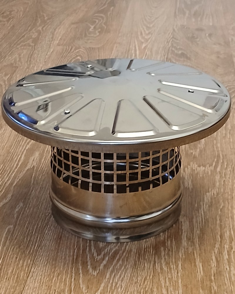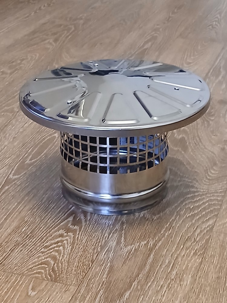 Зонт-искрогаситель дымохода с сеткой из нержавеющей стали марки AISI 430, диаметром 150 миллиметров, для мусоросжигательной печи.