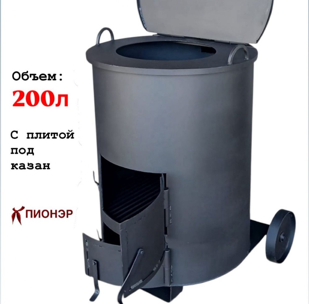 Печь - бочка для сжигания мусора Золушка 200 (5мм) (Pionehr)